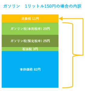 ガソリン税①・ガソリン税②・石油税・消費税の四重苦。